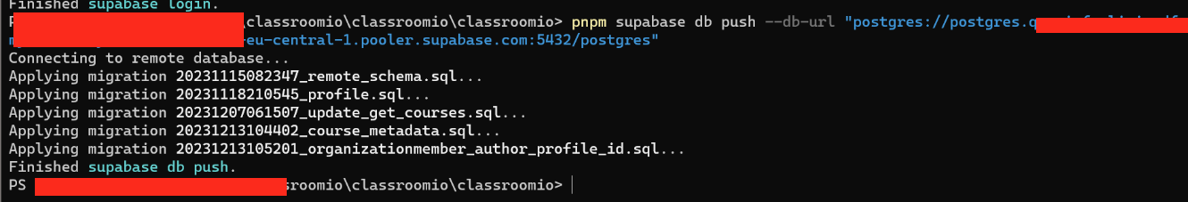 supabase db push --db-url "URL HERE"Important