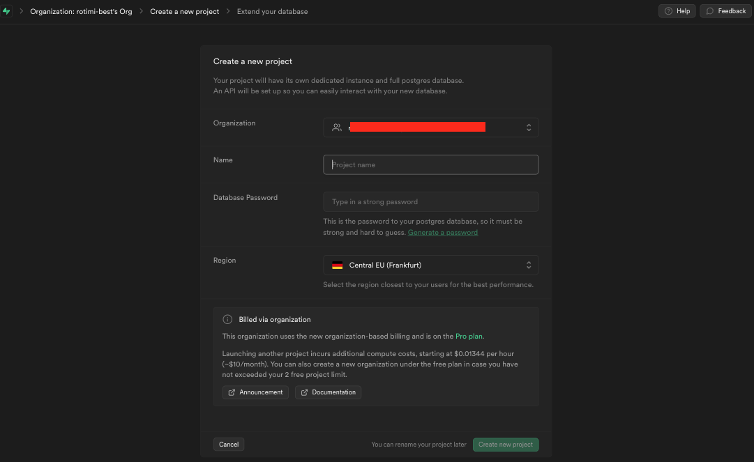 Create a Supabase project